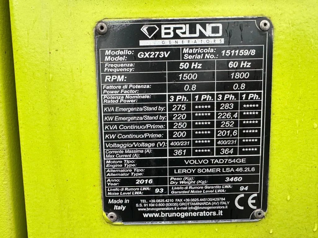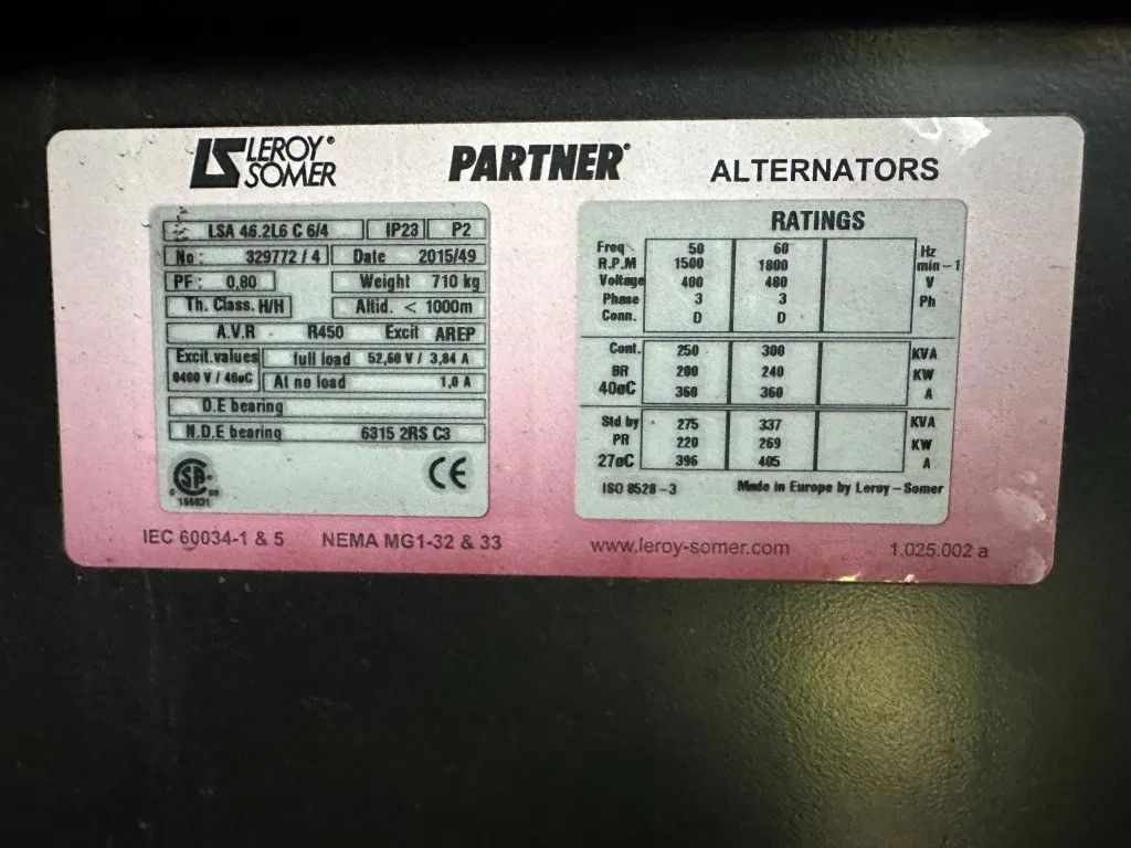 - توان خروجی: ۲۵۰ کاوا به صورت پیوسته 275 kVA در حالت آماده به کار (Standby)