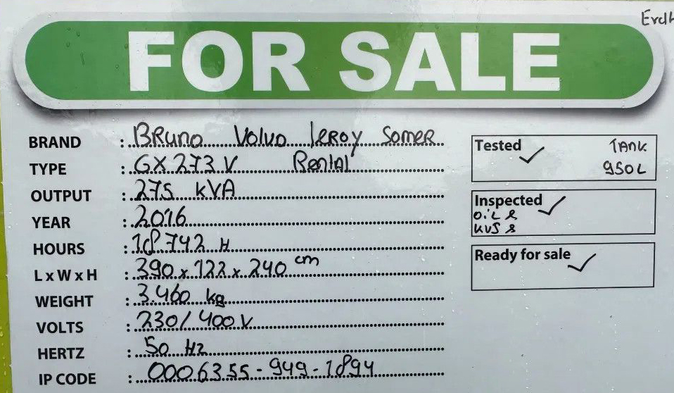 - انواع خروجی برق: ۲ عدد ۱۲۵ آمپر، ۴۰۰ ولت – ۱ عدد ۱۶ آمپر، ۲۳۰ ولت