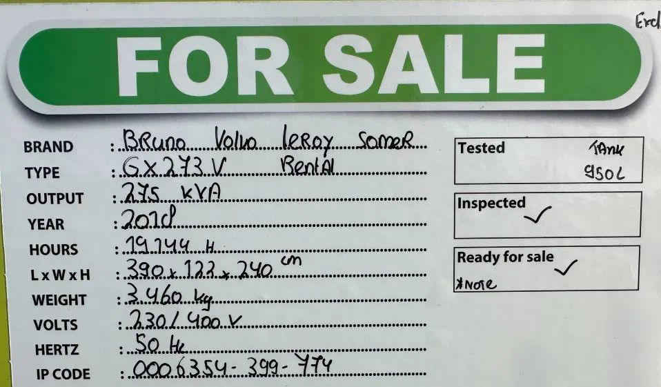 - انواع خروجی برق: ۲ عدد ۱۲۵ آمپر، ۴۰۰ ولت – ۱ عدد ۱۶ آمپر، ۲۳۰ ولت